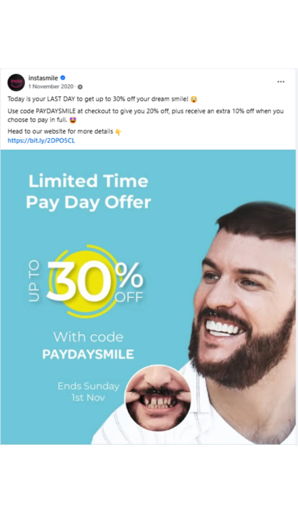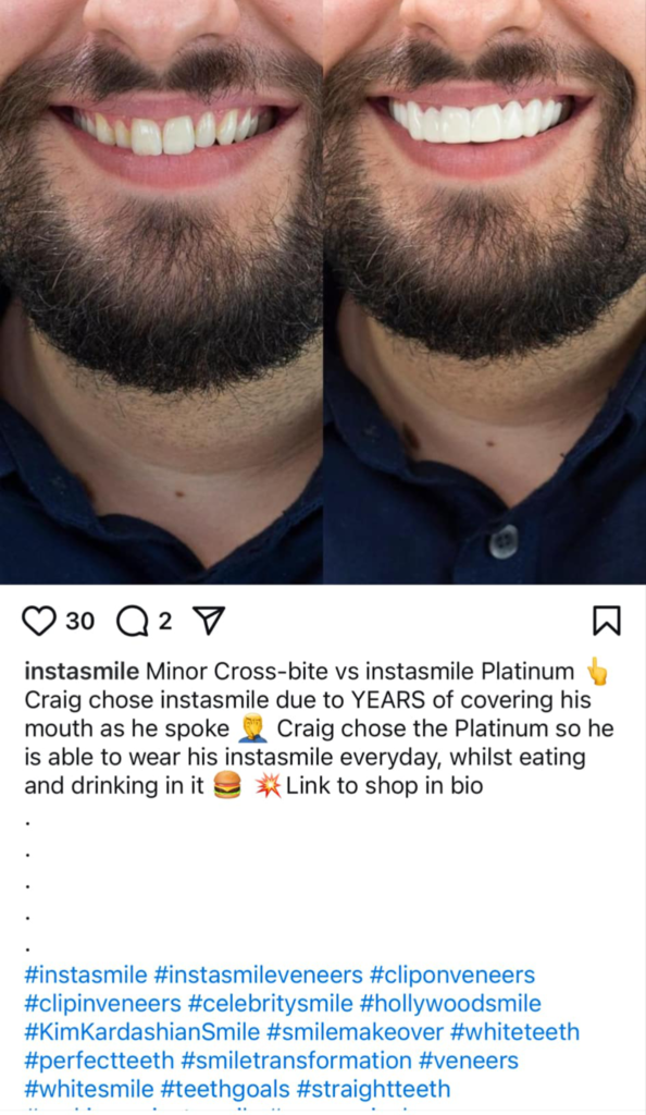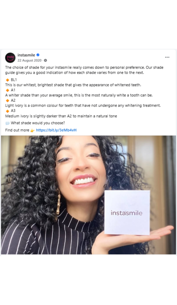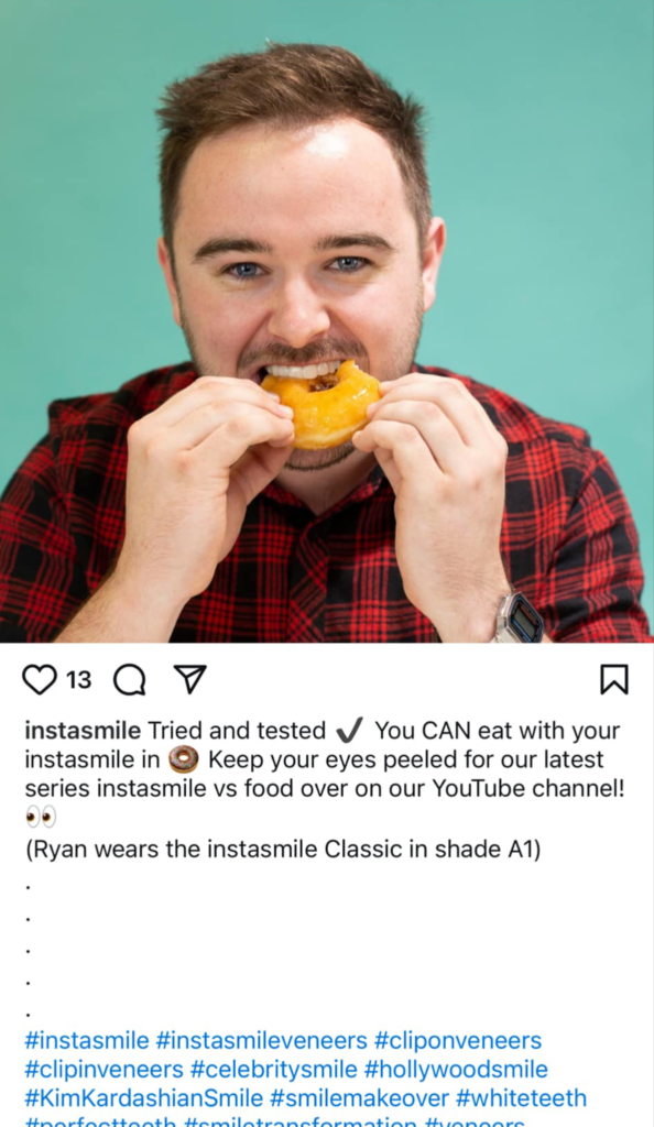 A sampling of social media posts for Instasmile, pushed on both Instagram and Facebook. I used the software Hootsuite for this scheduling.