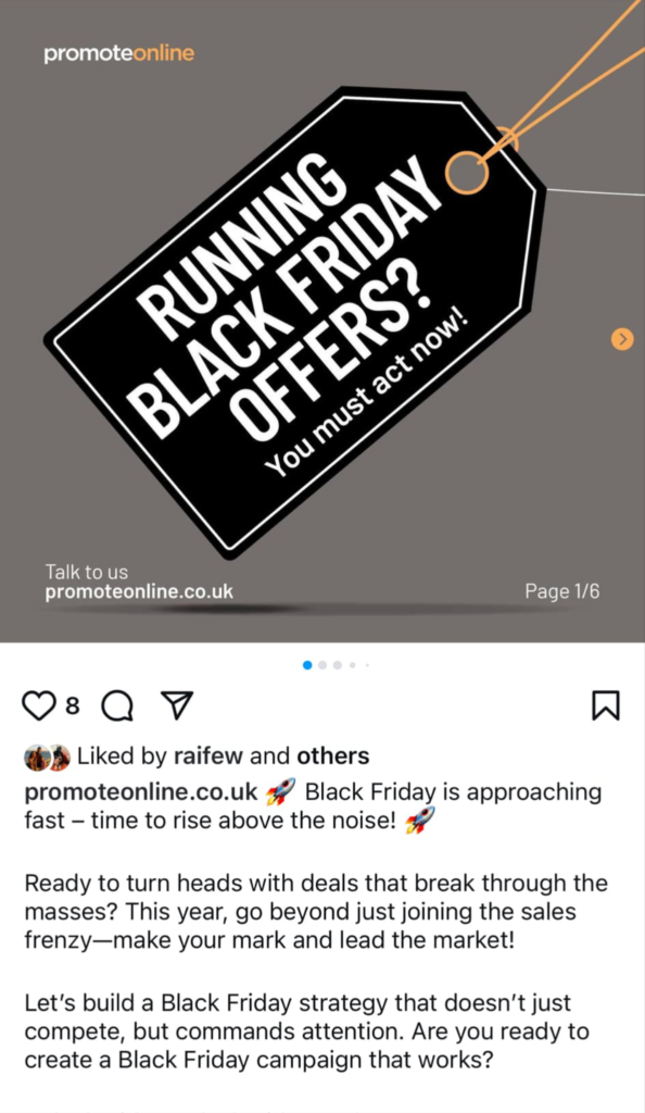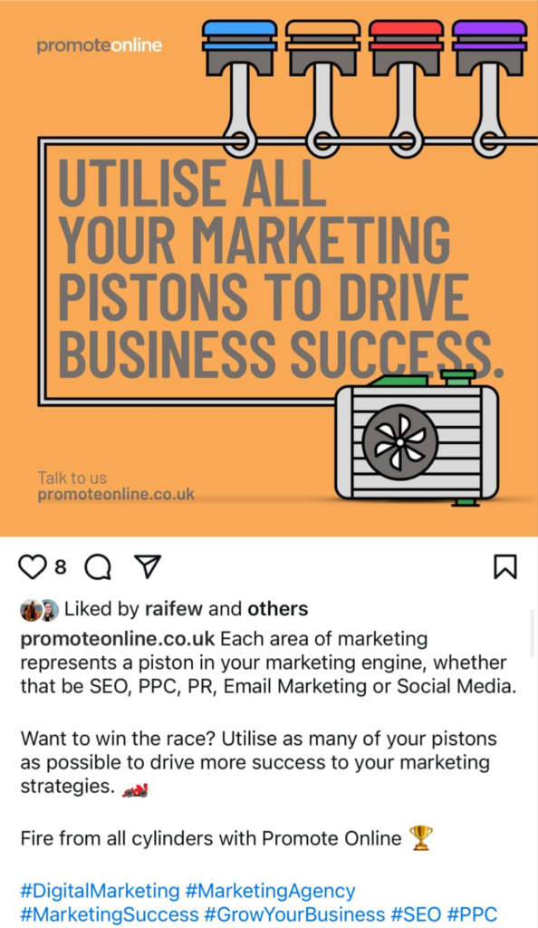A sampling of social media copy for the Promote Online agency internal social media channels. Featured below are samplings from their Instagram account, scheduled through Buffer.